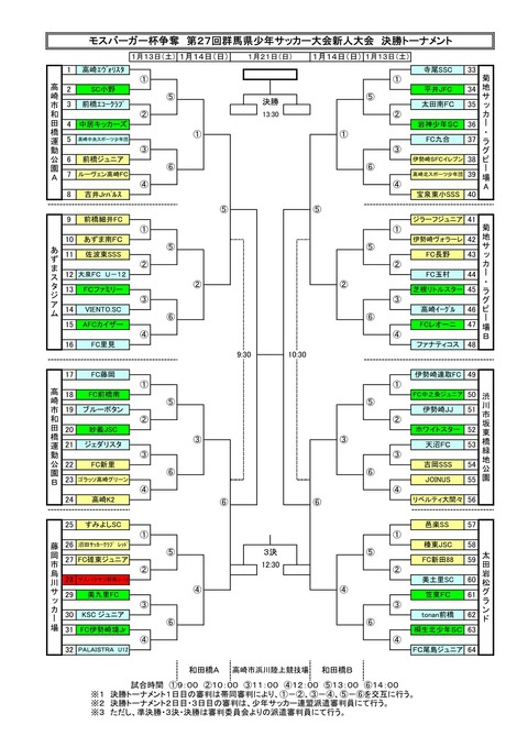 モスバーガー杯争奪 第27回群馬県少年サッカー大会新人大会 決勝トーナメント組合せ ザスパクサツ群馬 U15 応援blog